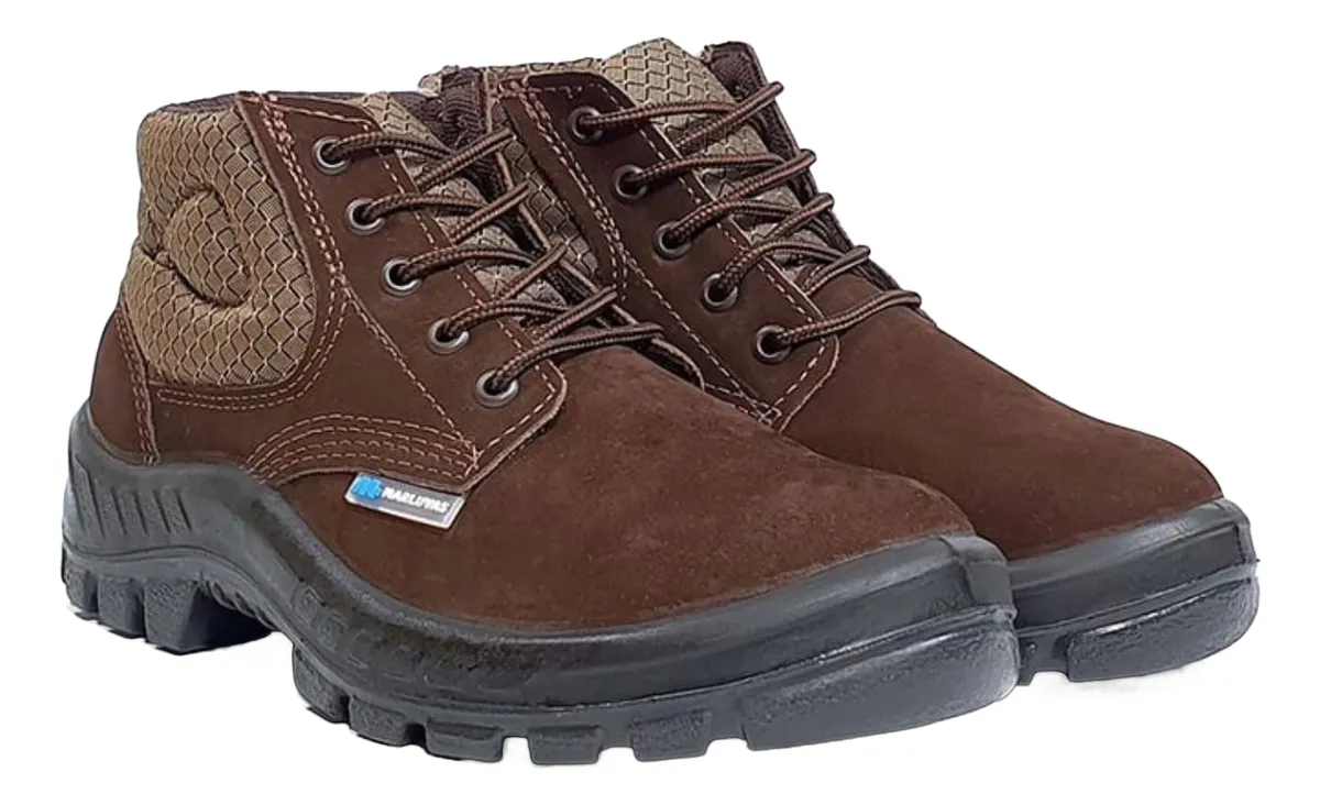 botina de segurança Marluvas 50B26 é referência em segurança ocupacional. Fabricada com cabedal de Nobuck hidrofugado e bico em PVC, oferece leveza e